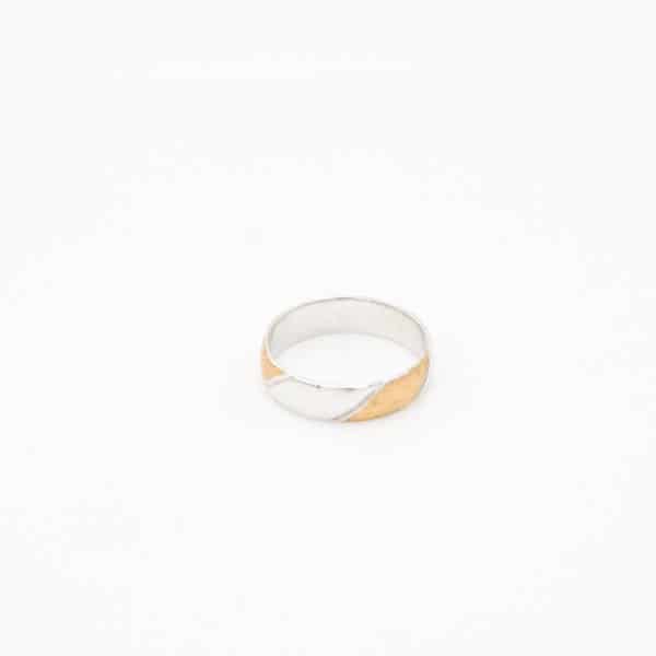 18kt Solid White Gold Ring with Brushed Yellow Gold Motif.