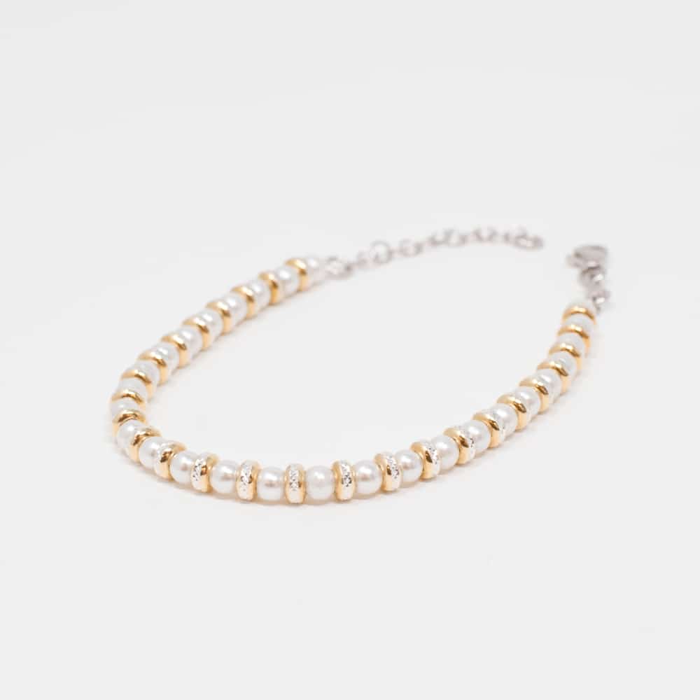Sterling Silver Bracelet with Yellow Gold Plating and Diamond Cut together with Fresh Water Pearls.