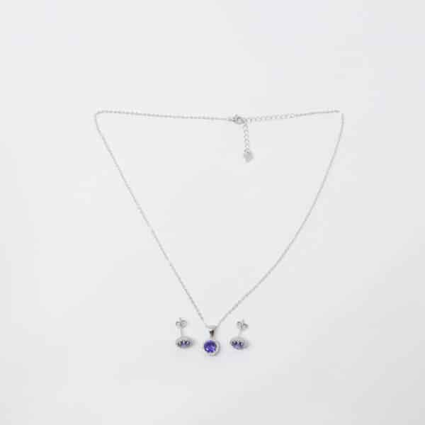 Sterling Silver Matching Necklace and Earrings with Amethyst.