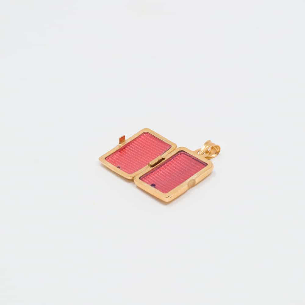 18kt Yellow Gold Rectangular Locket Pendant with an Engraved Pattern.